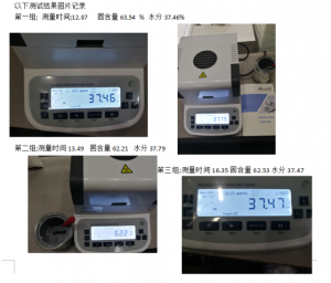 | 產(chǎn)品狀態(tài); | 重量 | 測試溫度 | 測試時(shí)間 | 固含量結(jié)果 | 水分結(jié)果 |