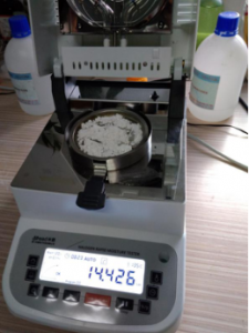 測(cè)試樣品:取5克大米,用粉碎機(jī)打成粉末狀,置于不銹鋼托盤(pán)中平鋪均勻,溫度設(shè)置120℃用儀器進(jìn)行加熱,約12分鐘后檢測(cè)結(jié)束,檢測(cè)數(shù)據(jù)顯示14.38%;