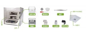 ①主機(jī)、②水槽、③測量臺、④鑷子、⑤說明書、⑥砝碼、⑦防風(fēng)防塵罩、⑧測顆粒配件一套、⑨測浮體配件一套、⑩電源變壓器一個